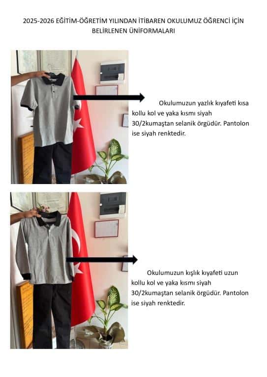 2025-2026 Eğitim Öğretim yılı için okulumuzun üniforması fotoğraftaki gibi belirlenmiştir.